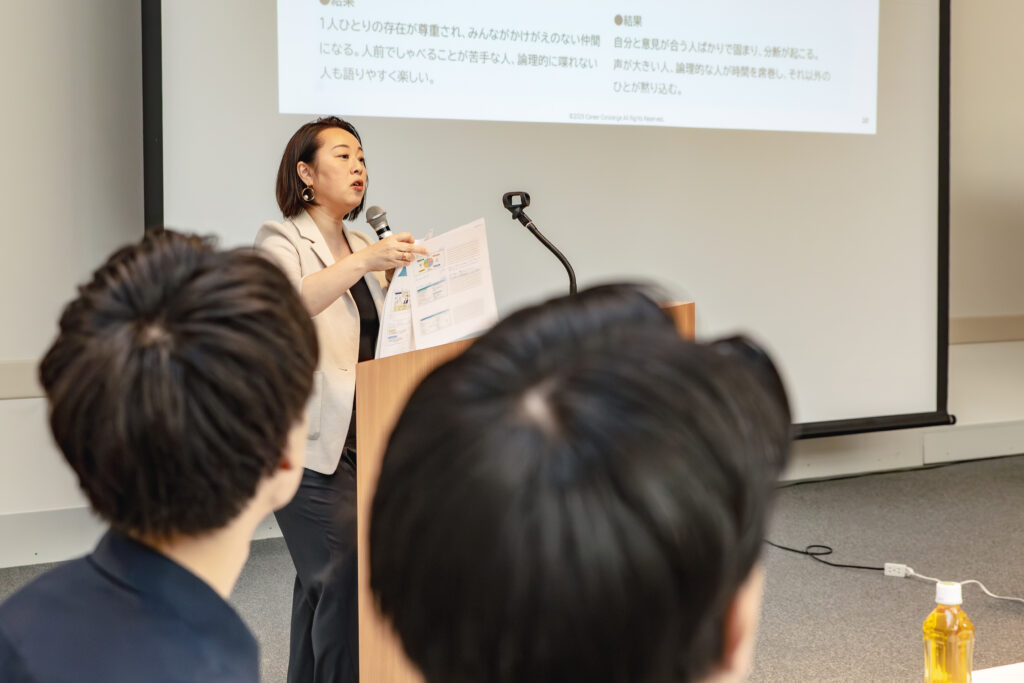 講師に株式会社キャリア・コンシェルジュの下門 千華氏をお招きして、「コミュニケーションとチームビルディング」のテーマでお話いただきました。