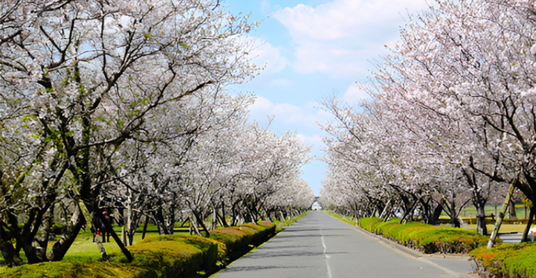 鹿屋市の串良平和公園はかつて旧海軍航空隊串良基地があった場所。東西南北約3㎞の滑走路跡の両脇に桜が植えられ、桜並木が美しい名所となりました。