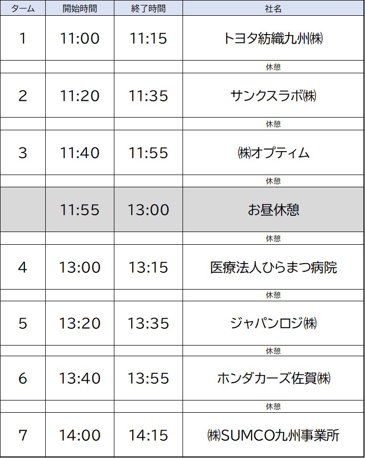 1社あたり15分程度で自社の仕事内容や働き方についてご紹介します。